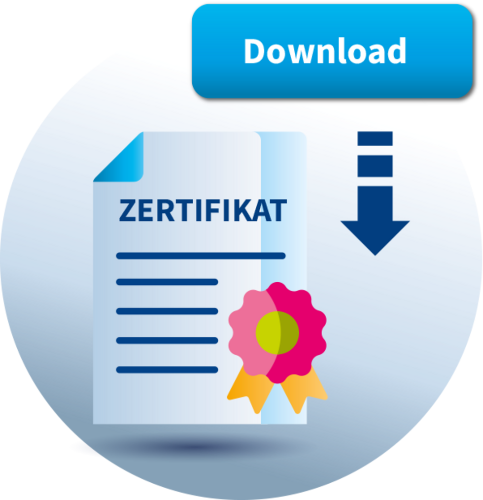 Ihre Zertifizierungsurkunde steht zum Download als PDF-Datei bereit.
